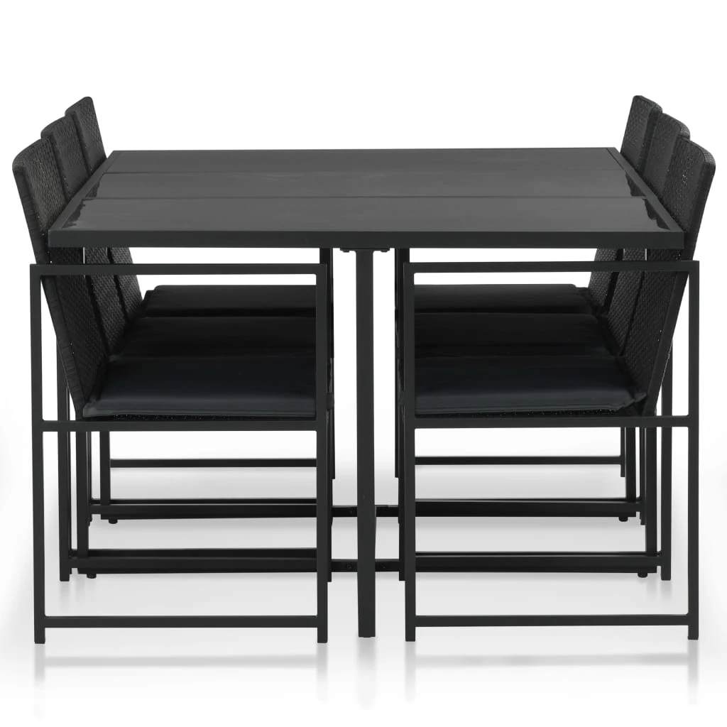 vidaXL 7-daļīgs dārza mēbeļu komplekts ar matračiem, PE pinums, melns