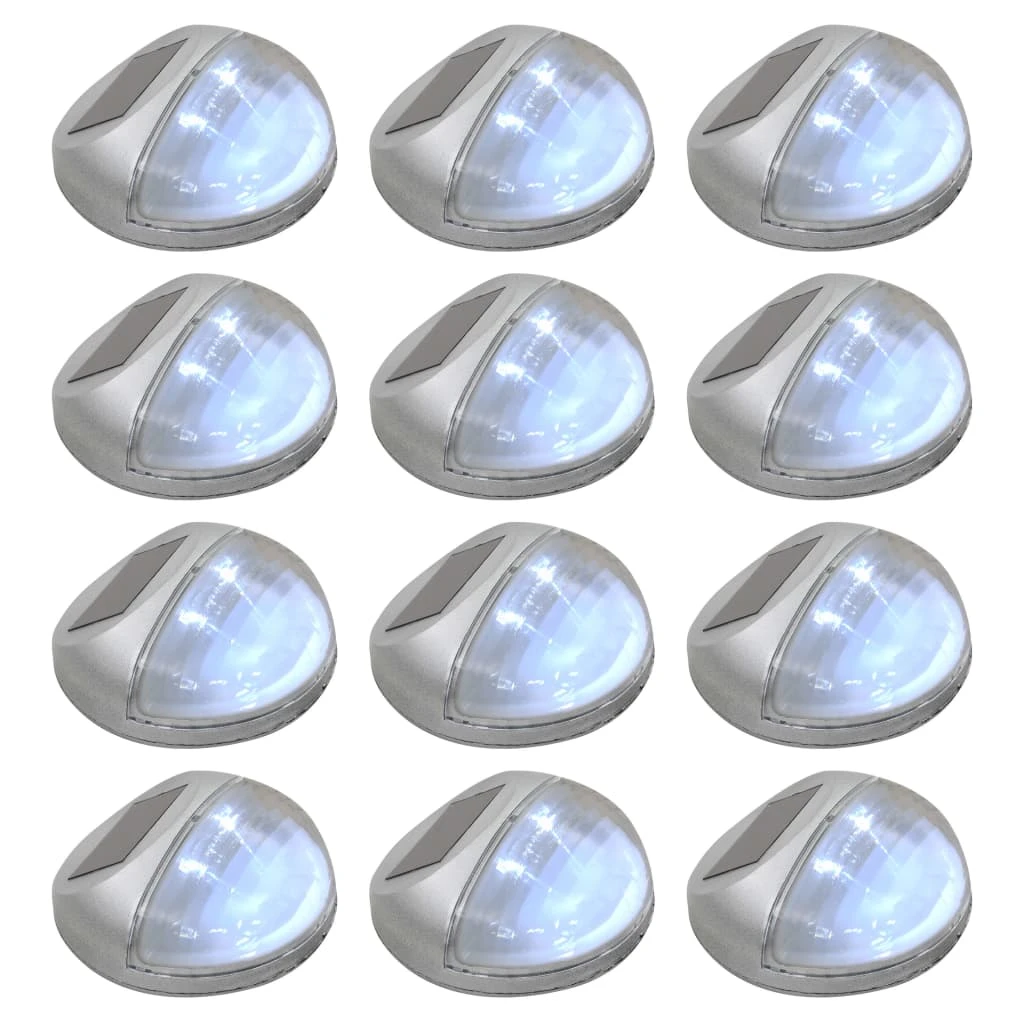 vidaXL āra solārās sienas lampas, 12 gab., LED, apaļas, sudraba krāsa
