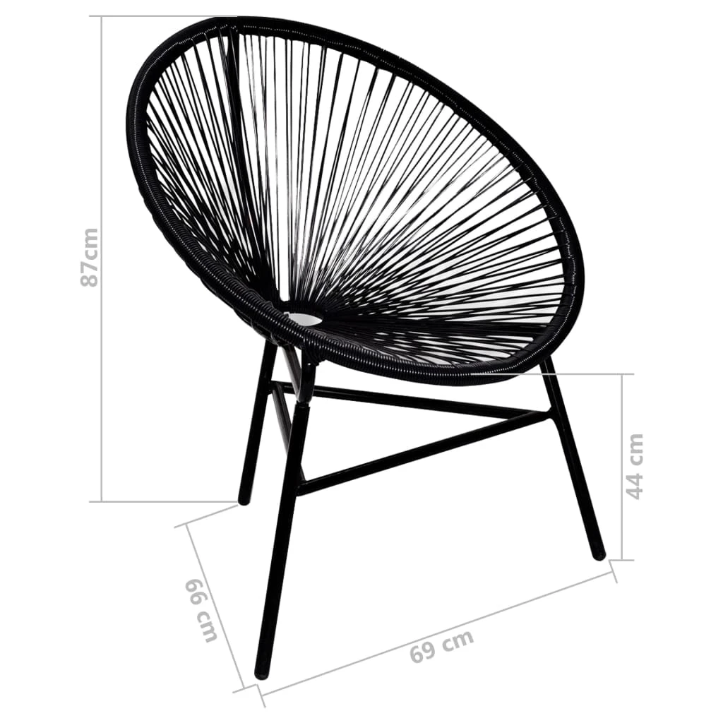 vidaXL dārza krēsls, PE rotangpalma, melns, apaļš