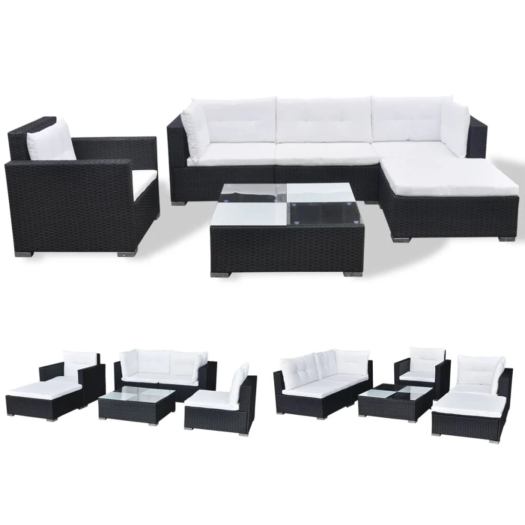 vidaXL 6-daļīgs dārza atpūtas mēbeļu komplekts ar matračiem, PE, melns