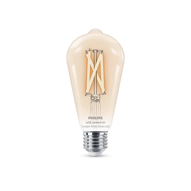 Produkta veids- Viedās spuldzes. Artikuls- 929003018621. Zīmols- Philips Wiz. Spuldzītes tips- LED. Garums- 6.4 - 6.4mm. Platums- 6.4 - 6.4mm. Augstums- 14.3 - 14.3mm. Spriegums- 220 - 240V. Cokols- E27. Gaismas plūsma- 806 - 806lm. Spuldzītes forma- Elipse. Apgaismojuma krāsa- Balta. Krāsas temperatūra- 2700 - 6500°K. Virsmas/stikla veids- Vintāžas. Lampas apgaismojuma regulators- Jā. Spuldzītes apzīmējums- ST64. Krāsu atveidošanas indekss (CRI)- 80. Spuldzītes efektivitāte- 115 lm/W. Energoefektivitātes klase- E. Enerģijas patēriņš, kWh/1000 h- 7. Vidējais nominālais ekspluatācijas laiks- 15000 h. Ar reflektoru- Nē. Bezvadu savienojums (Wi-Fi)- Jā. Ar tālvadības pulti- Nē. Attālinātās vadības funkcija- Jā. Papildus informācija- Iespēja regulēt gaismas krāsu no 2700K līdz 6500K. Obligātā garantija- 24 mēn. Garantija juridiskām personām- 24 mēn.