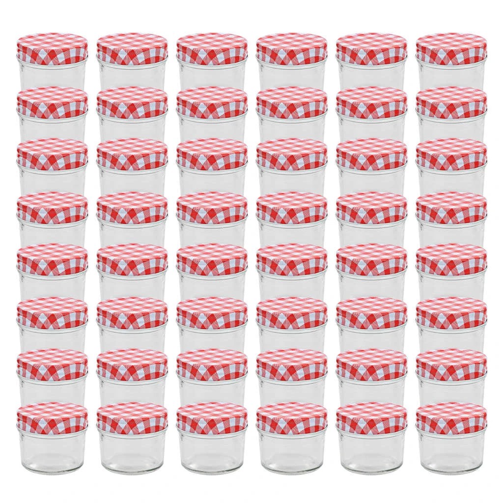vidaXL ievārījuma burciņas, balti sarkani vāciņi, 48 gab., 110 ml