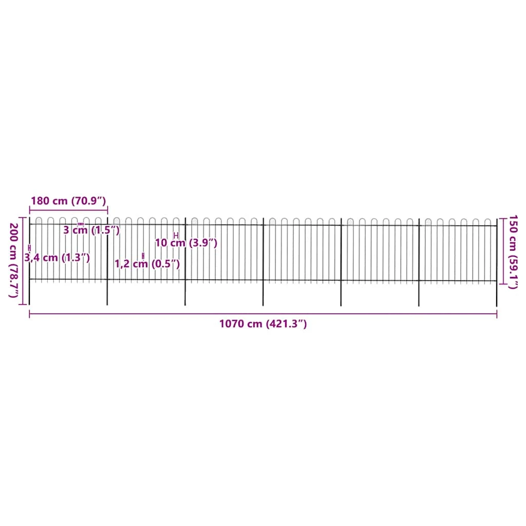 vidaXL dārza žogs ar stīpām augšpusē, tērauds, 1070x150 cm, melns