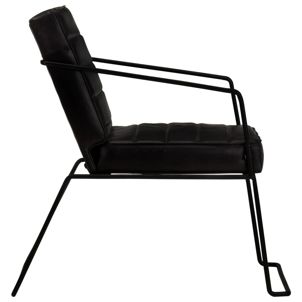 vidaXL atpūtas krēsls, melna dabīgā āda
