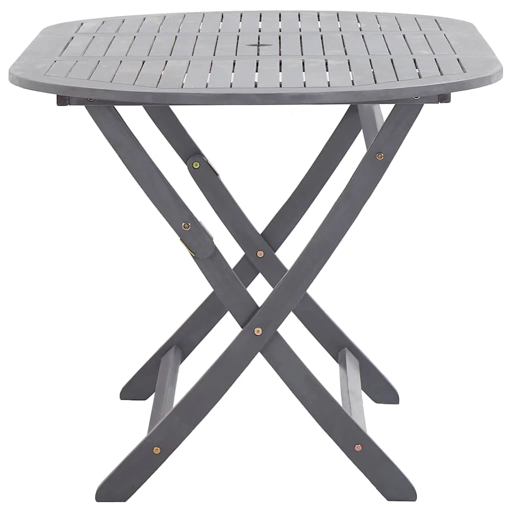 Āra pusdienu galds ir izgatavots no akācijas masīvkoka – tropu cietkoka, kas ir noturīgs pret dažādiem laikapstākļiem un ļoti izturīgs. Virsmas vidū ir caurums saulessarga ievietošanai. Āra galdu var salocīt, lai ietaupītu vietu, kad tas netiek izmantots. Galdam nepieciešama salikšana.