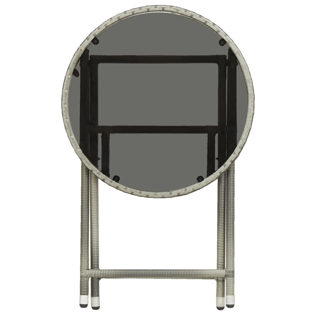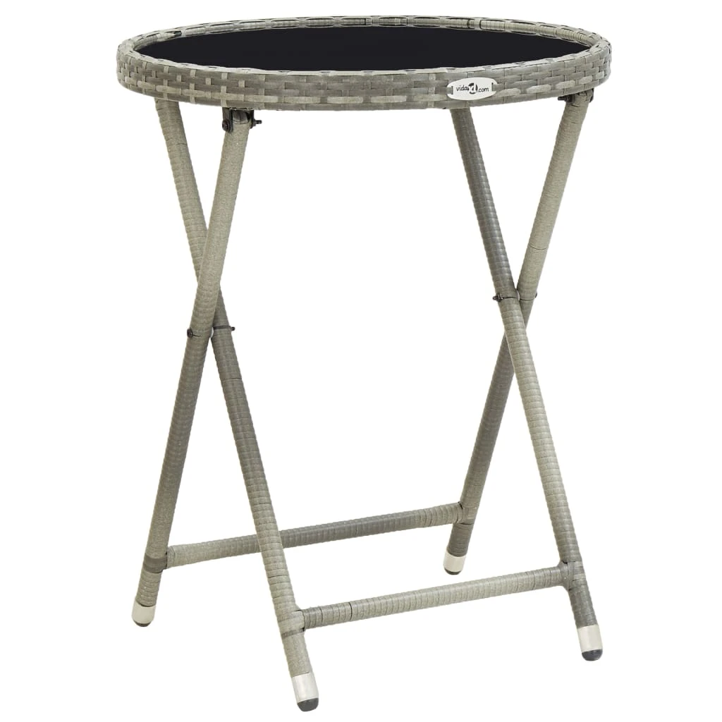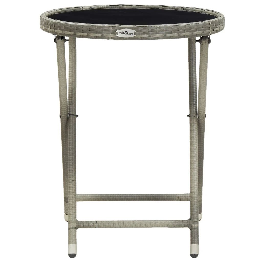vidaXL tējas galdiņš, pelēks, 60 cm, PE pinums, rūdīts stikls