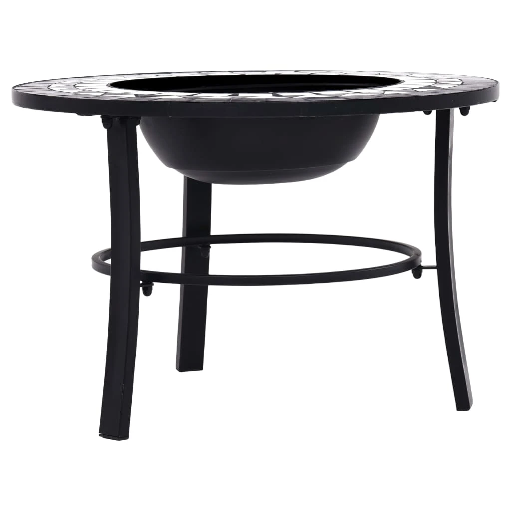 vidaXL ugunskura vietas galds, mozaīka, 68cm, melns ar baltu, keramika