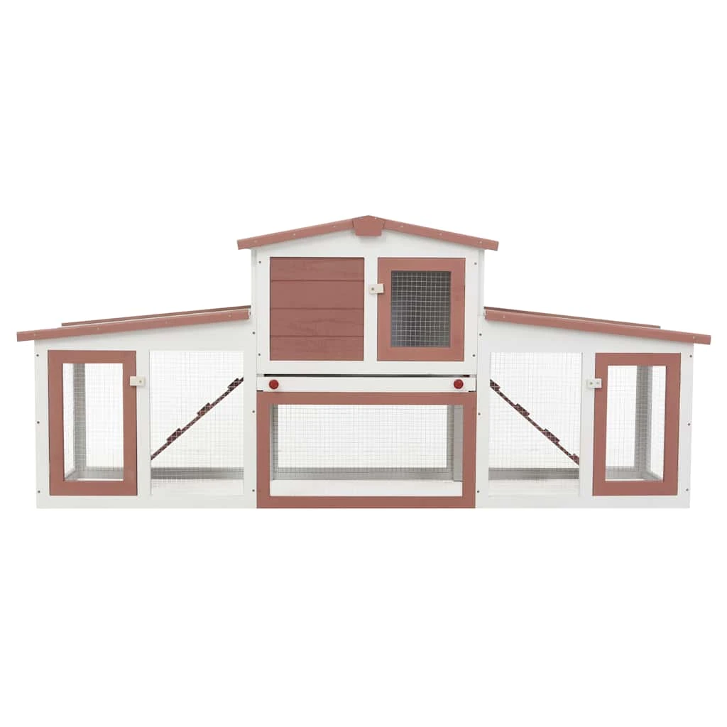 Būris ir izgatavots no krāsota egles masīvkoka, kas ir īpaši piemērots dzīvniekiem un kalpos ilgu laiku. Asfalta jumts pasargās jūsu pūkainos draugus no dažādiem laikapstākļiem. Paceltā būra konstrukcija nodrošinās dzīvniekiem drošu, sausu un siltu vietu, īpaši lietainās dienas. Abās pusēs ir rampa, pa kuru dzīvnieki varēs ērti nokļūt dzīvojamajā zonā. Lai būris būtu vieglāk tīrāms, tam ir izņemama paplāte. Āra teritorijai ir izturīgs stiepļu žogs, kas nodrošinās ventilāciju, neļaus dzīvniekiem izbēgt un pasargās tos no citiem dzīvniekiem. Pateicoties aizslēdzamajām durvīm, jūsu dzīvnieki vienmēr būs drošībā un jūs varēsiet tos ērti ielikt būrī un izņemt no tā.