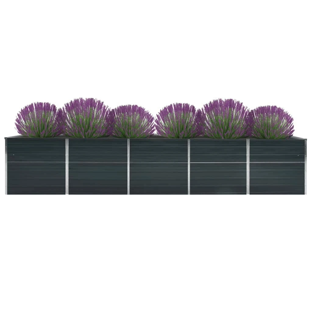vidaXL augstā puķu kaste, cinkots tērauds, 400x80x77 cm, pelēka