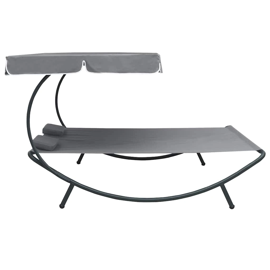 vidaXL dārza atpūtas gulta ar jumtu un spilveniem, pelēka