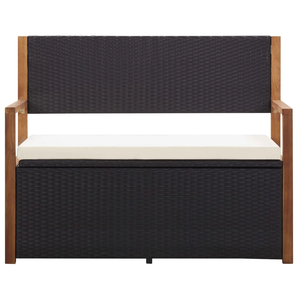 vidaXL sols ar kasti, 115 cm, melna PE rotangpalma, akācijas masīvkoks