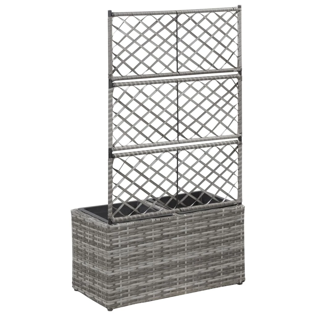 Šis polietilēna rotangpalmas vīteņaugu režģis ar augstajām kastēm un 2 izņemamiem podiem piešķirs jūsu āra teritorijai īpašu šarmu.