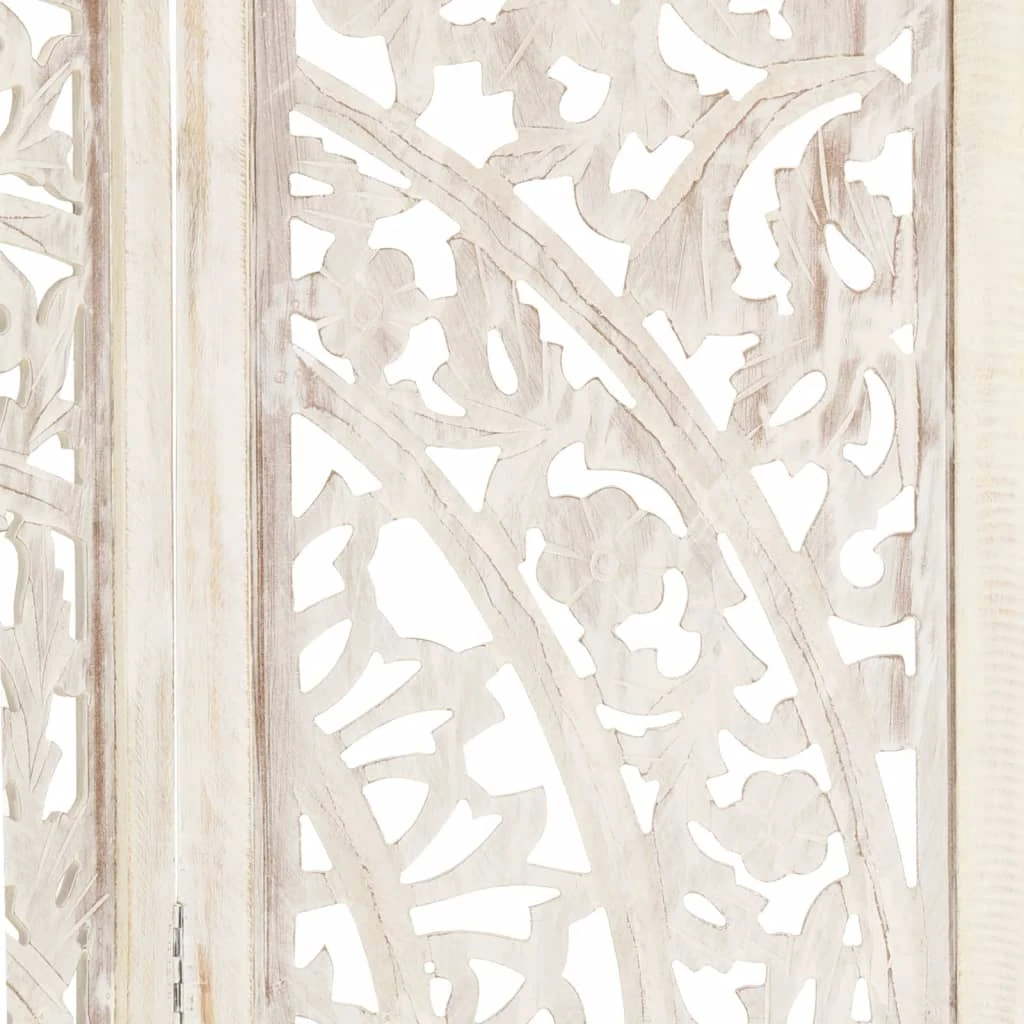 vidaXL 3-paneļu aizslietnis, roku darbs, balts, 120x165 cm, masīvkoks