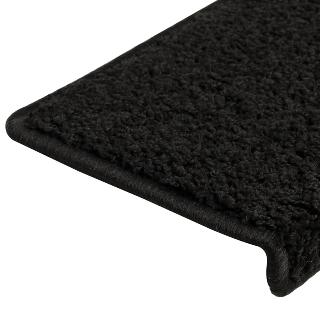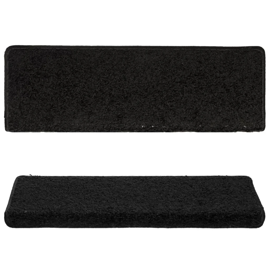 vidaXL kāpņu paklājiņi, 15 gab., 65x21x4 cm, melni, taisnstūrveida mala