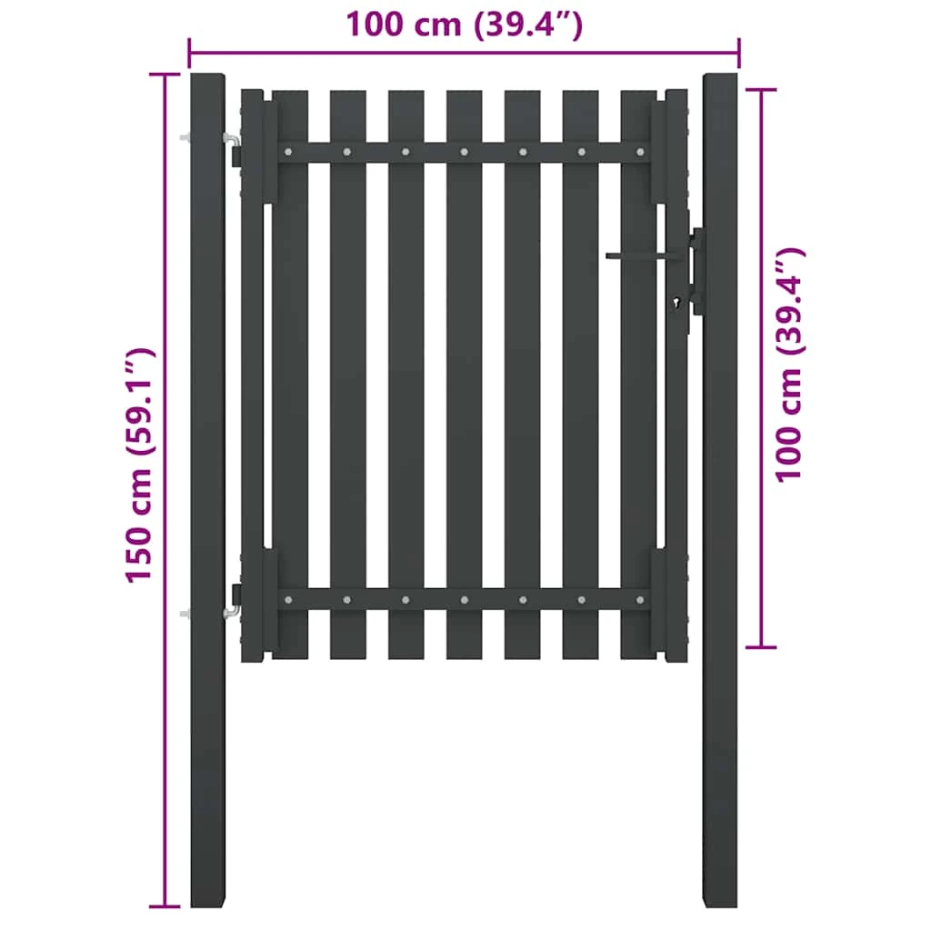 vidaXL dārza žoga vārti, tērauds, 100x100 cm, antracīta krāsā