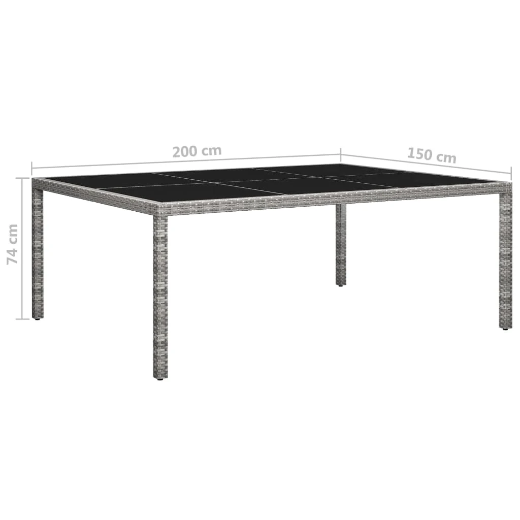 vidaXL dārza galds, 200x150x74 cm, pelēka PE rotangpalma