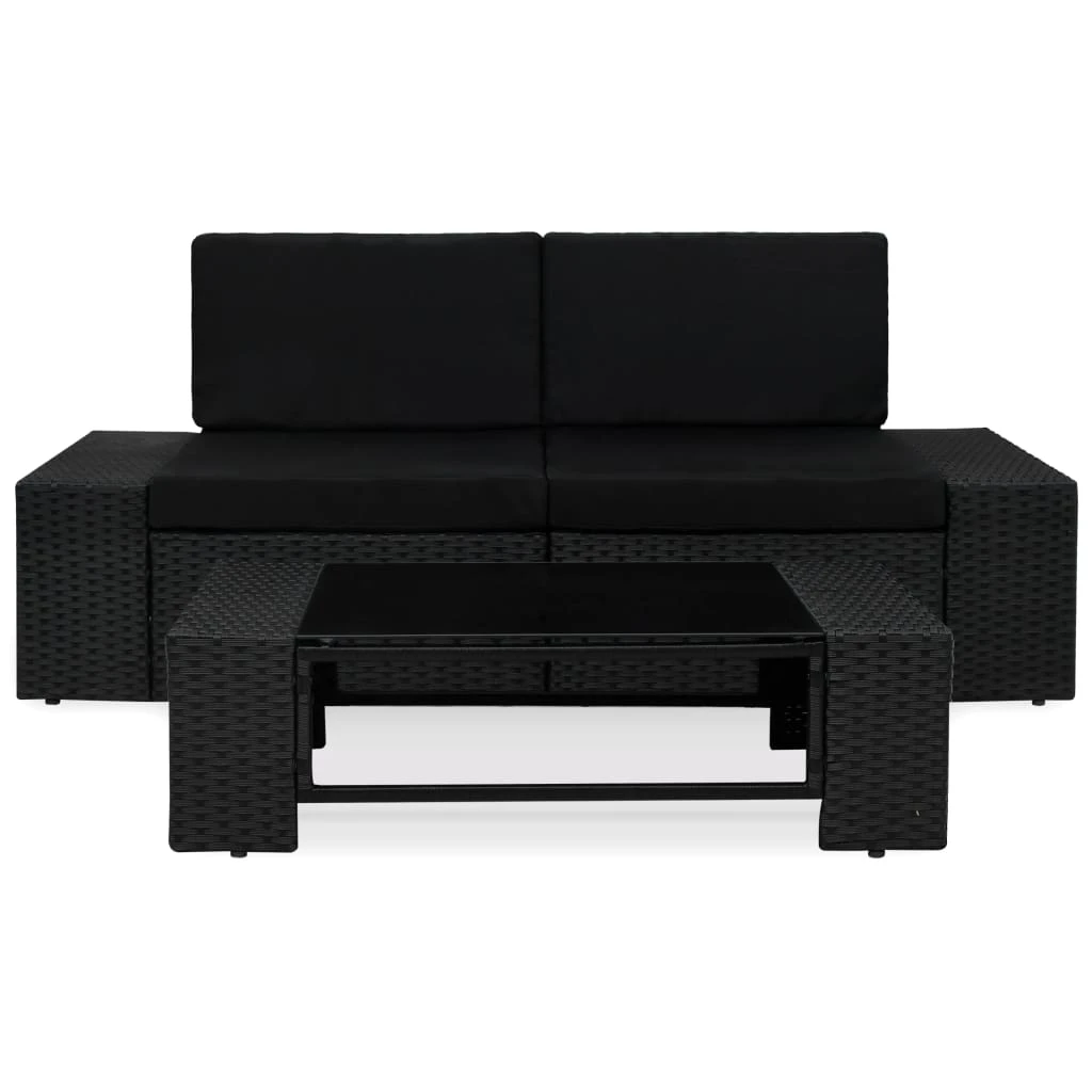vidaXL 3-daļīgs dārza atpūtas mēbeļu komplekts, PE rotangpalma, melns