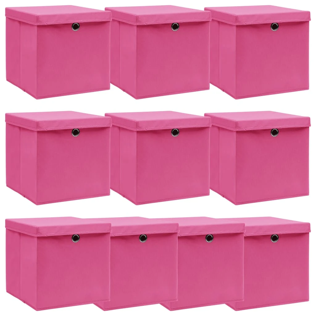 vidaXL uzglabāšanas kastes ar vāku, 10 gab., 32x32x32 cm, rozā audums