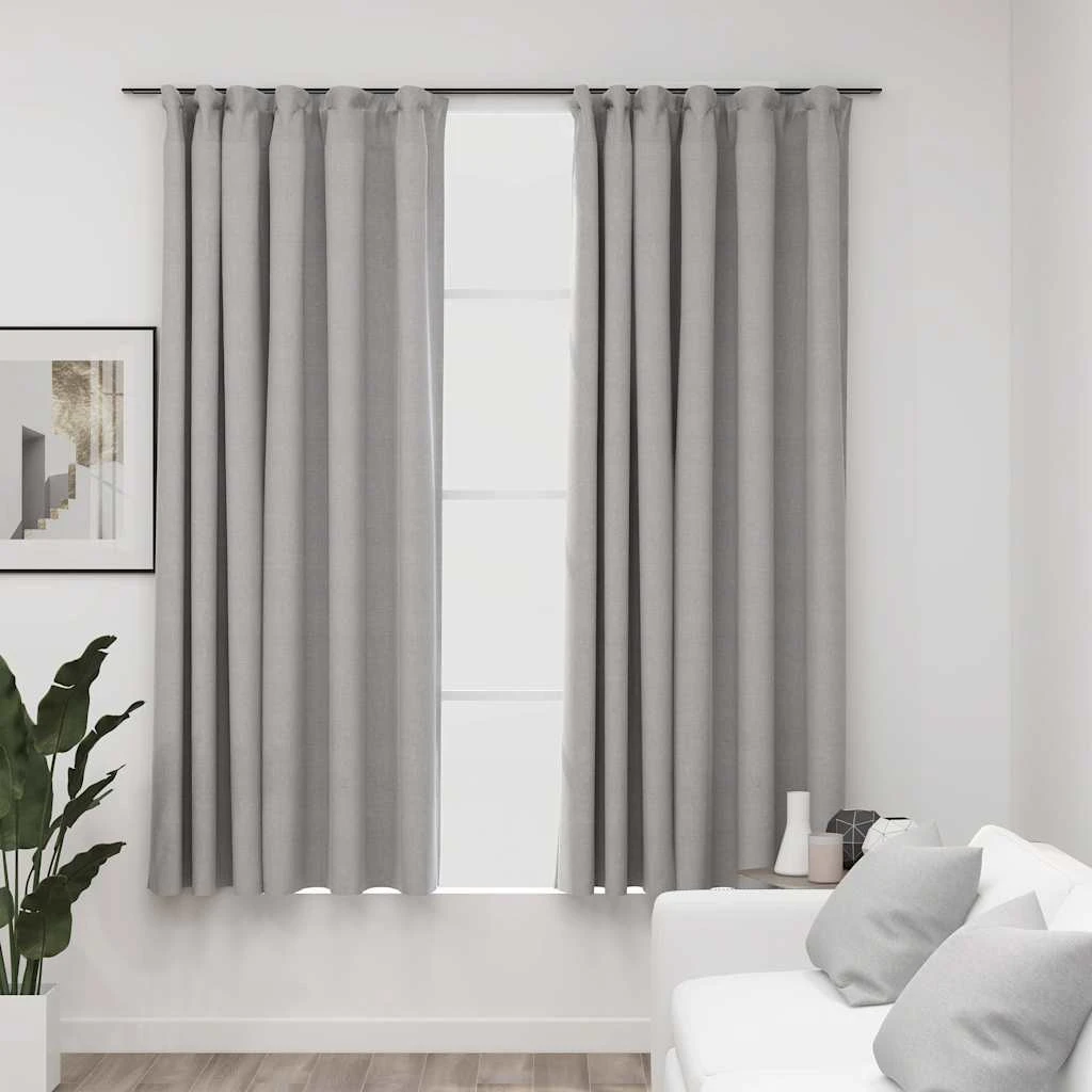 vidaXL biezie aizkari ar āķiem, 2 gab., pelēki, linveida, 140x175 cm