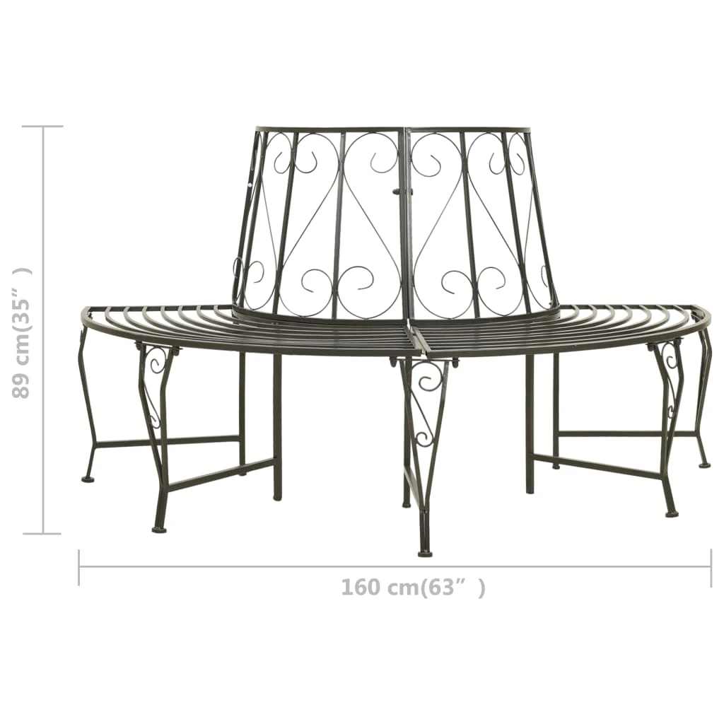 vidaXL pusapaļš dārza sols, uzstādāms ap koku, 160 cm, tērauds