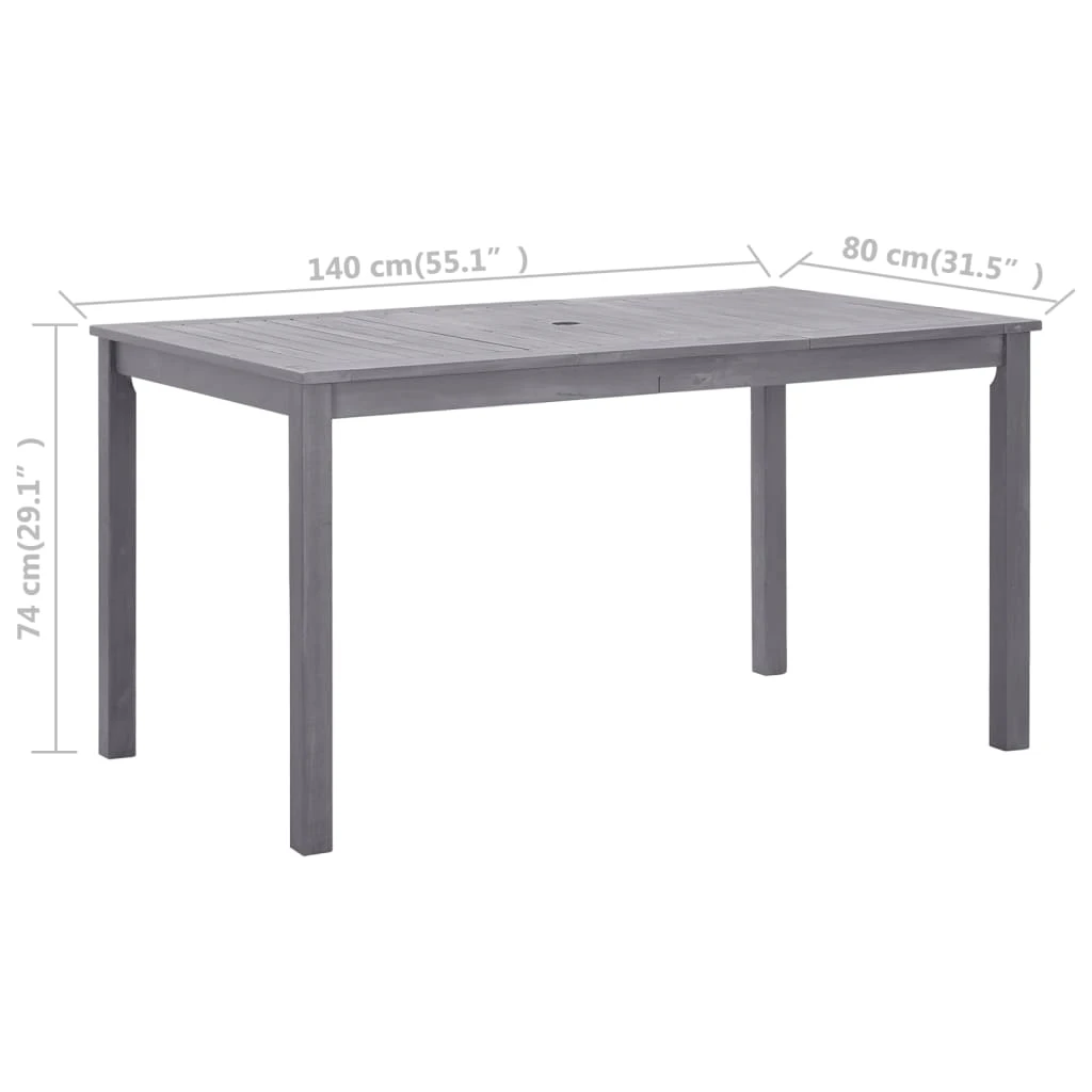 vidaXL dārza galds, pelēks, 140x80x74 cm, akācijas masīvkoks