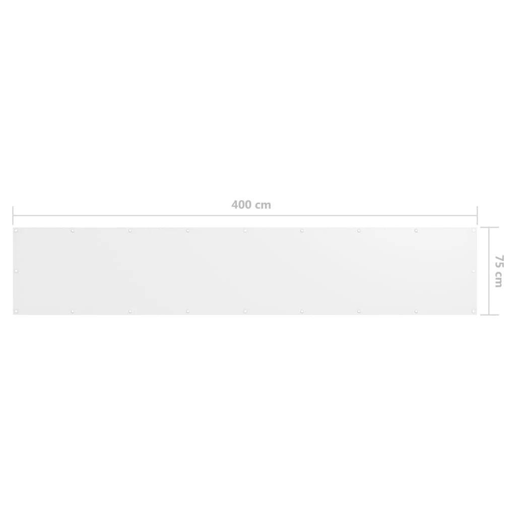 vidaXL balkona aizslietnis, 75x400 cm, balts audums