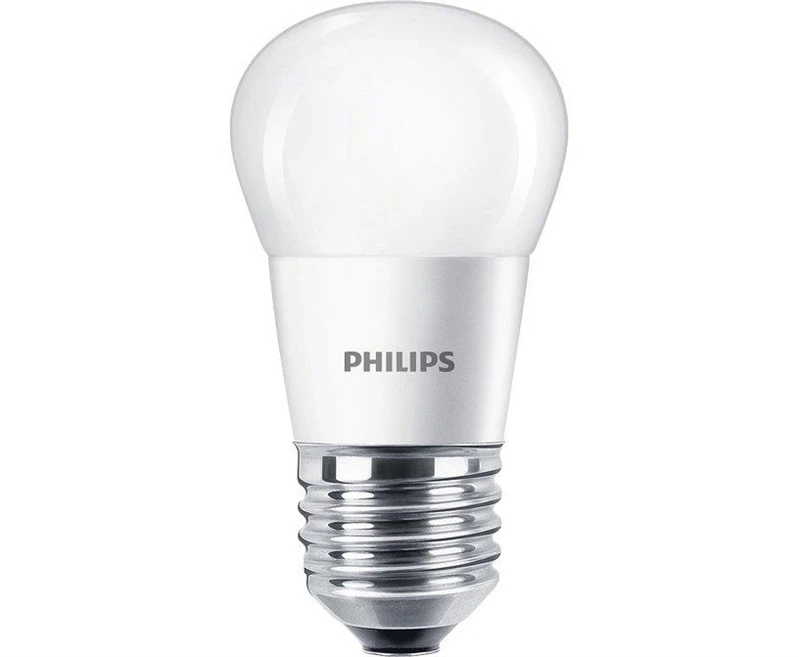 Preces tips- Spuldzes. Artikuls- 929002978218. Zīmols- Philips. Spuldzes tips- LED. Garums- 45 - 45mm. Platums- 45 - 45mm. Augstums- 87 - 87mm. Spriegums- 220 - 240V. Cokols- E27. Gaismas plūsma- 450 - 450lm. Spuldzes forma- Apaļa/burbulis. Gaismas krāsa- Silti balta. Krāsu temperatūra- 2700 - 2700°K. Virsmas/stikla tips- Matēts. Gaismas plūsmas regulēšana- Nē. Spuldzes formas apzīmējums- P45. Krāsu atveides indekss (CRI)- 80. Spuldzes efektivitāte- 85 lm/W. Energoefektivitātes klase- F. Enerģijas patēriņš. kWh/1000 h- 5. Vidējais darbības ilgums- 15000 h. Ar reflektoru- Nē. Bezvadu vadība (Wi-Fi)- Nē. Ar tālvadības pulti- Nē. Tālvadības funkcija- Nē. Papildus informācija- Līdzvērtīga standarta 40 W spuldzei. Garantija- 24 mēn.
