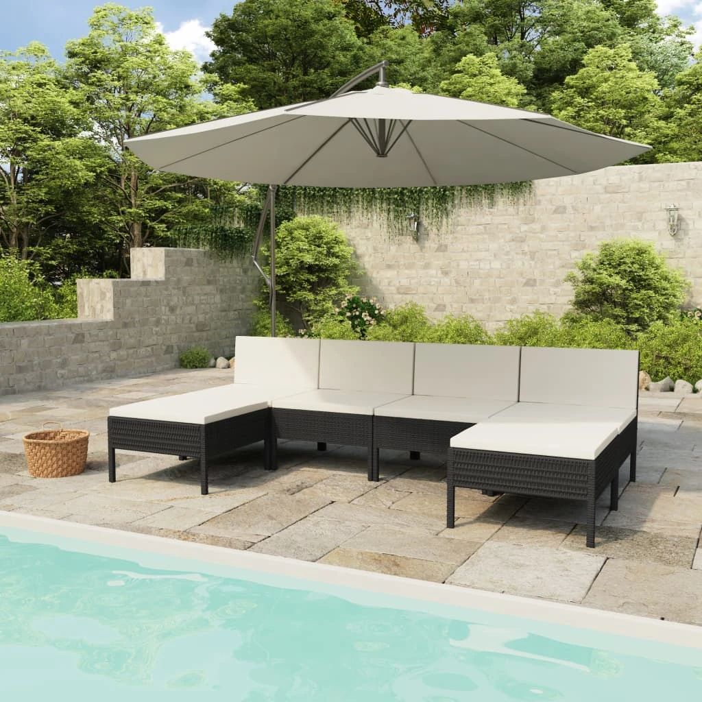vidaXL 6-daļīgs dārza atpūtas mēbeļu komplekts, PE rotangpalma, melns