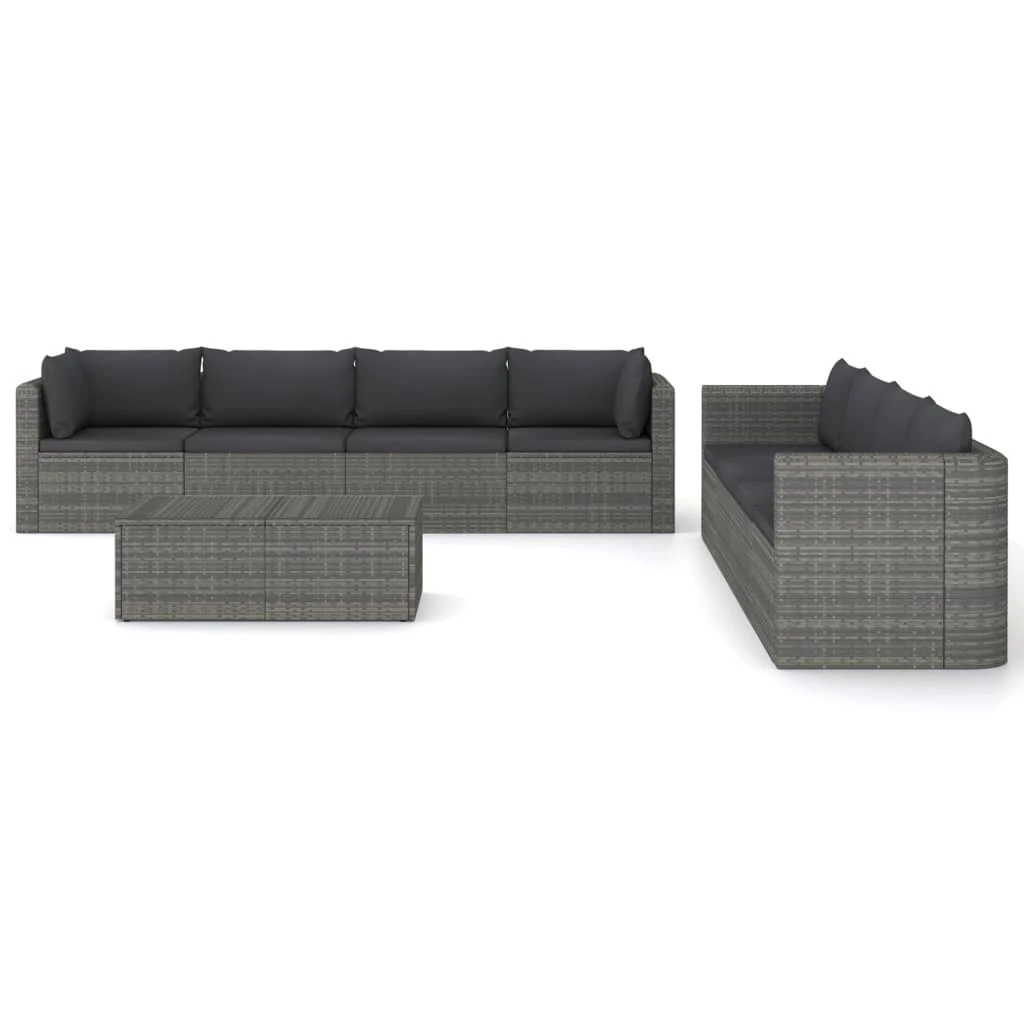 vidaXL 9-daļīgs dārza atpūtas mēbeļu komplekts, pelēka PE rotangpalma