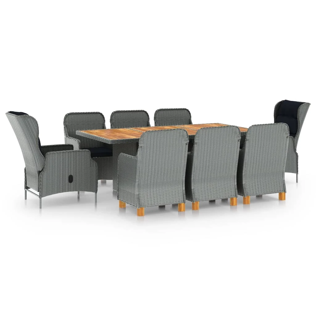 vidaXL 9-daļīgs dārza mēbeļu komplekts ar matračiem, PE rotangpalma