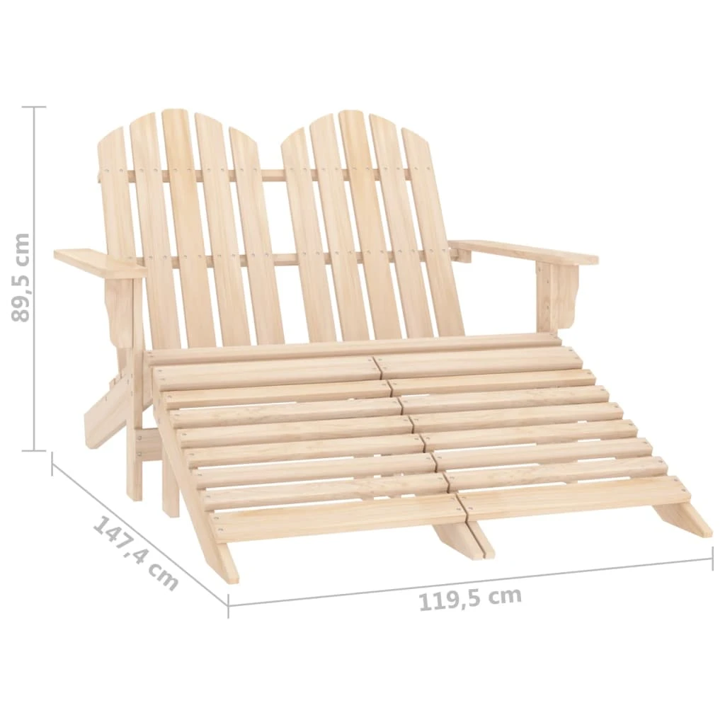 vidaXL divvietīgs dārza krēsls ar kāju balstiem, egles koks