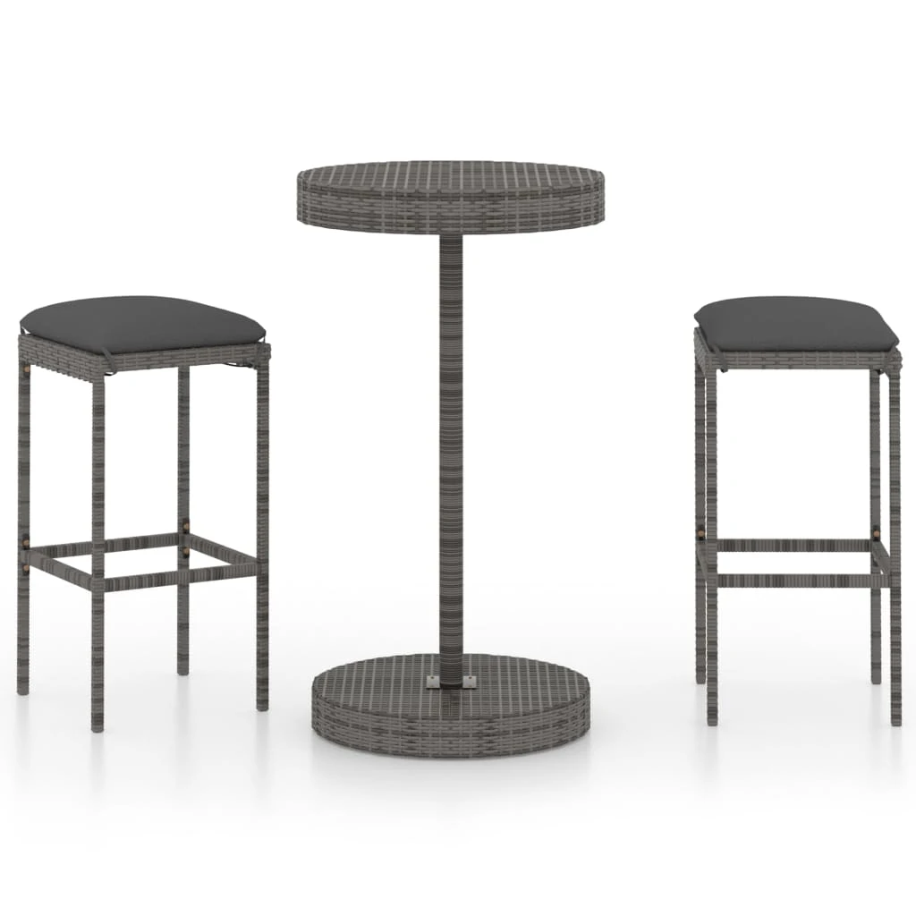 vidaXL 3-daļīgs dārza bāra mēbeļu komplekts, matrači, PE rotangpalma