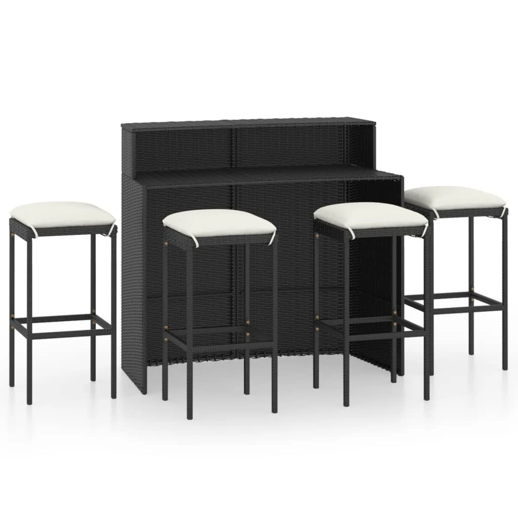 vidaXL 5-daļīgs dārza bāra mēbeļu komplekts ar matračiem, melns
