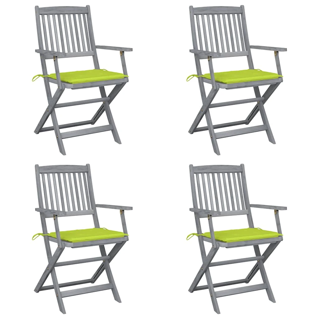 vidaXL saliekami āra krēsli ar matračiem, 4 gab., akācijas masīvkoks