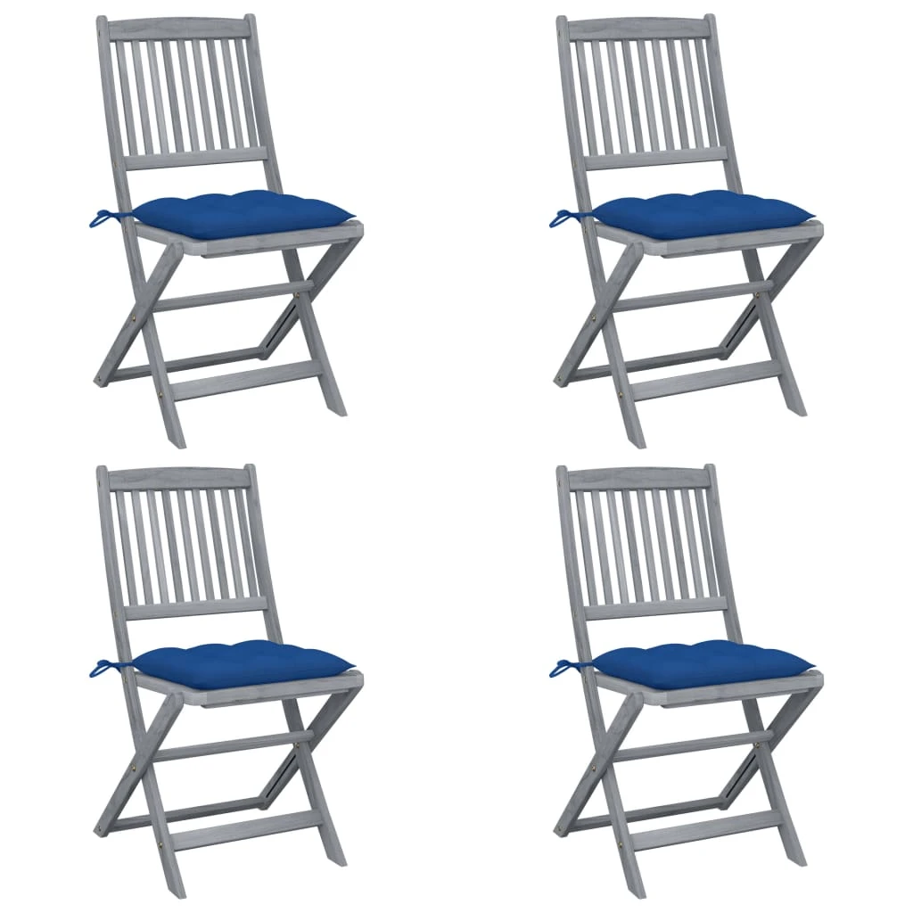 vidaXL saliekami āra krēsli ar matračiem, 4 gab., akācijas masīvkoks
