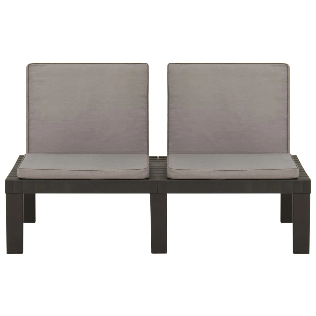 vidaXL 4-daļīgs dārza mēbeļu komplekts ar matračiem, pelēka plastmasa