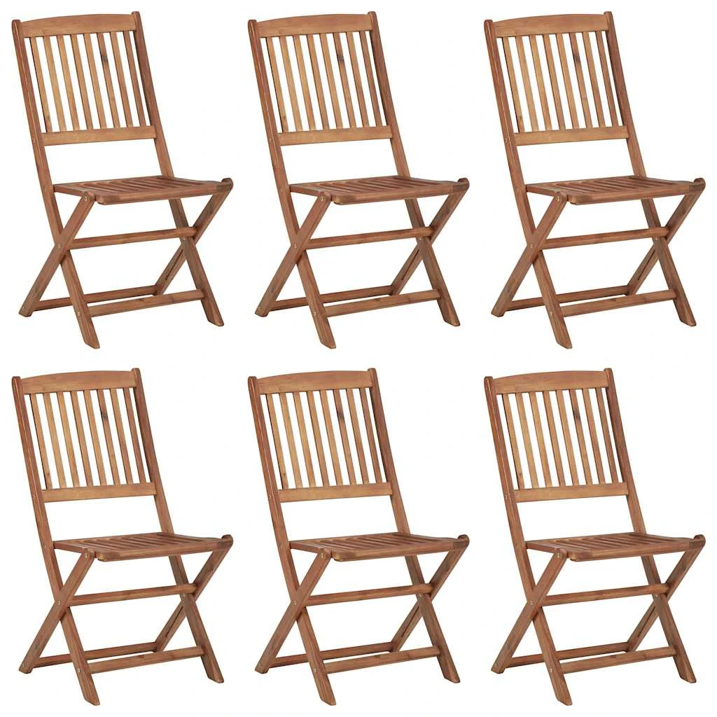 vidaXL saliekami dārza krēsli ar matračiem, 6 gab., akācijas masīvkoks