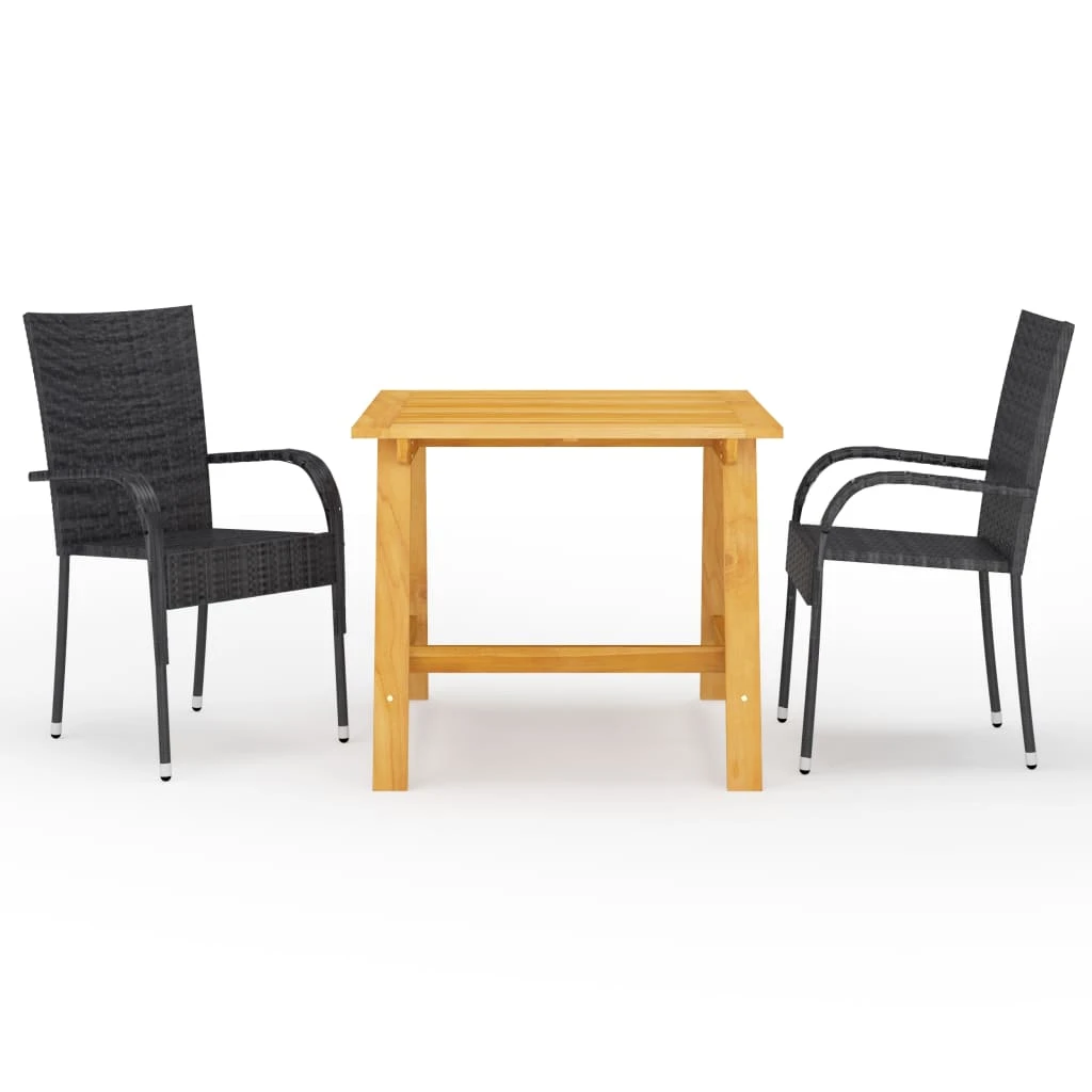 vidaXL 3-daļīgs dārza mēbeļu komplekts, melns