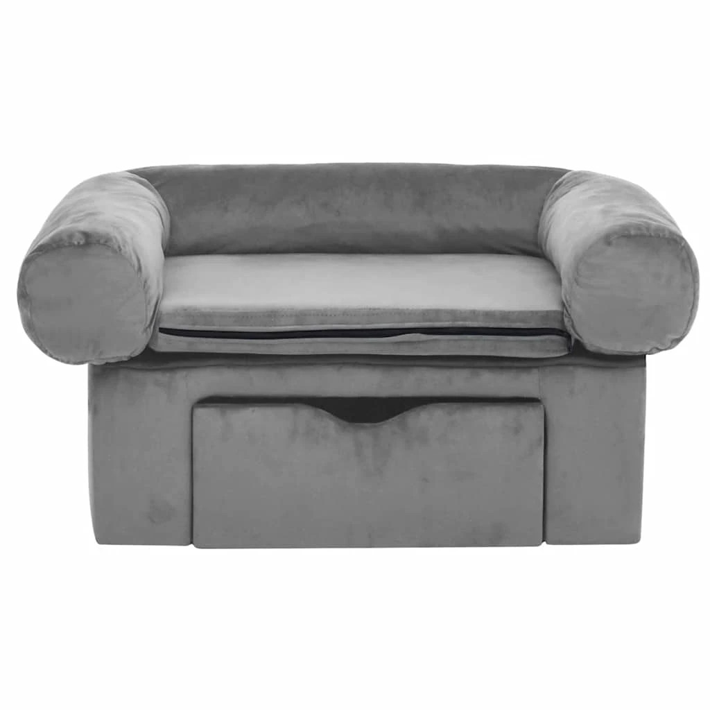 vidaXL suņu dīvāns ar atvilktni, pelēks, 75x50x38 cm, plīšs