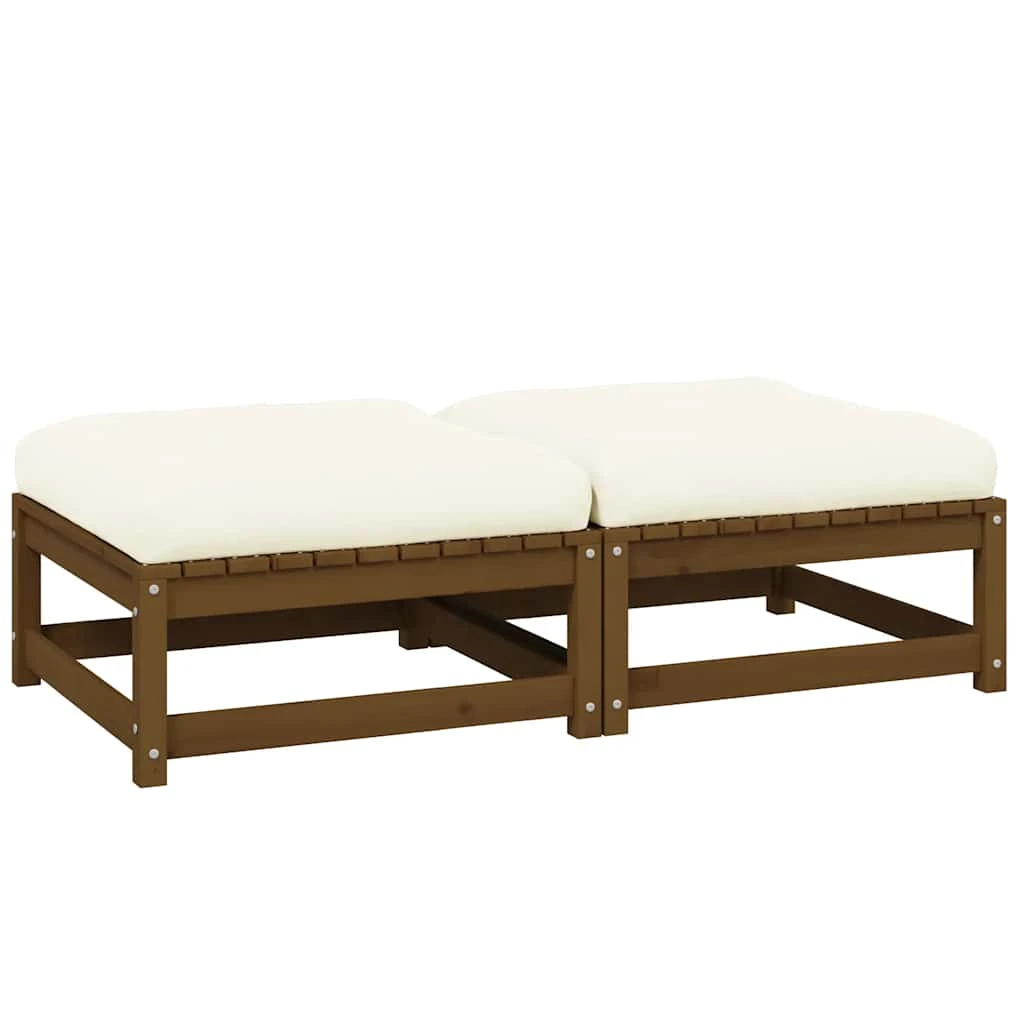 vidaXL dārza soli ar matračiem, 2 gab., medus brūns priedes masīvkoks