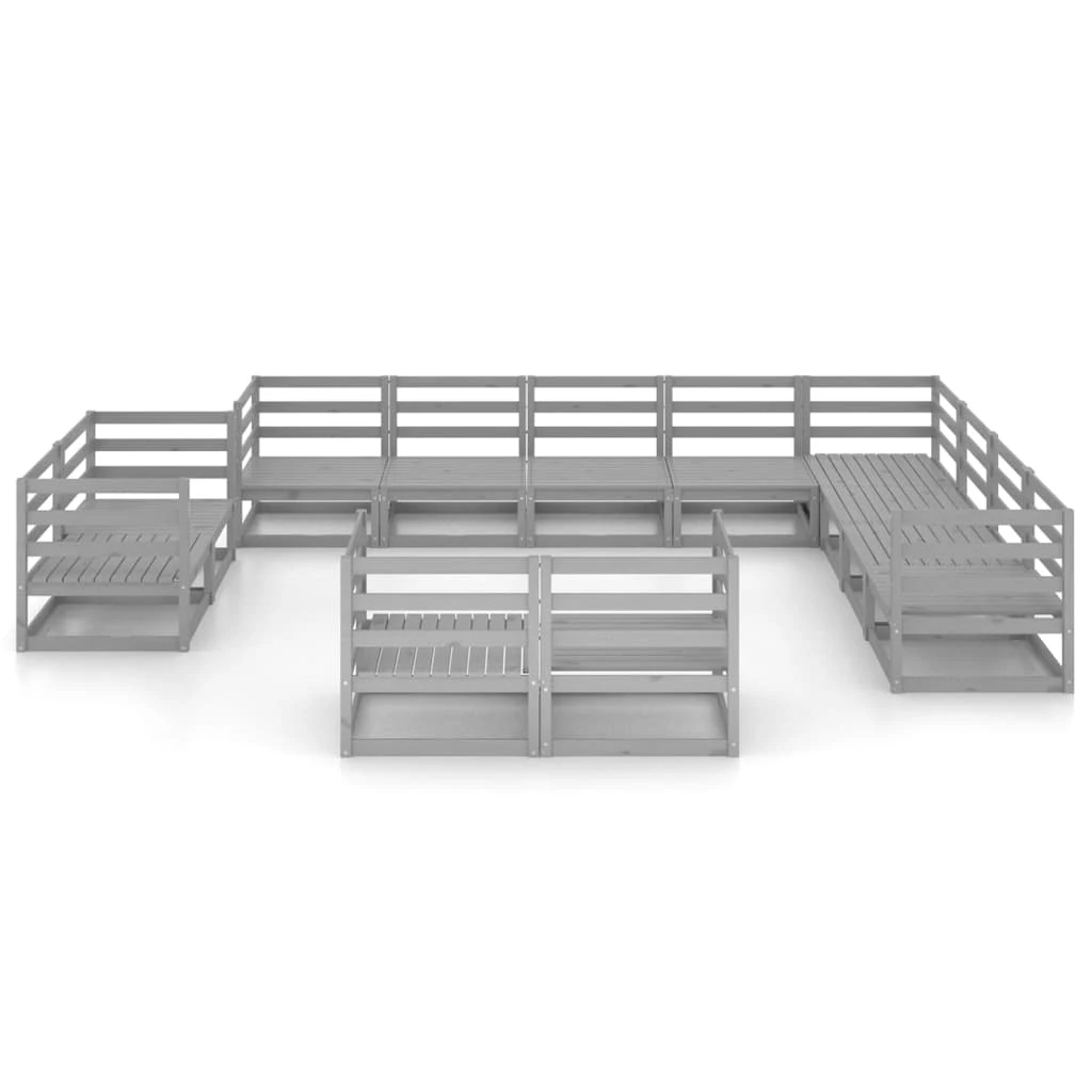 vidaXL 12-daļīgs dārza atpūtas mēbeļu komplekts, pelēks priedes koks