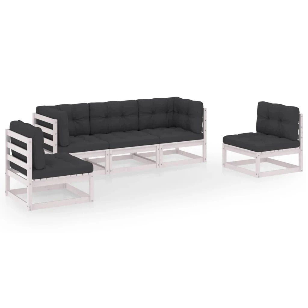 vidaXL 5-daļīgs dārza atpūtas mēbeļu komplekts ar matračiem, priede