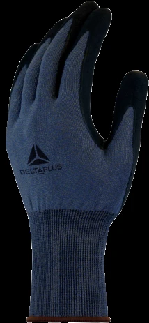 Tekstila darba cimdi, nitrila plaukstas daļa, pretiegriezuma D klase, pelēki, 9, Delta Plus