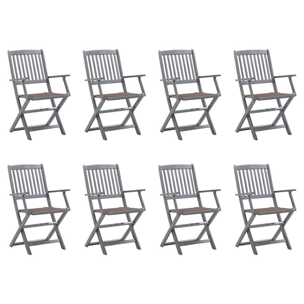 vidaXL saliekami āra krēsli ar matračiem, 8 gab., akācijas masīvkoks