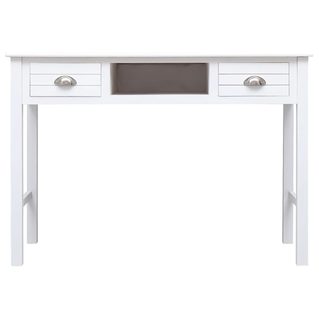 vidaXL rakstāmgalds, 108x45x76 cm, balts, paulonijas masīvkoks