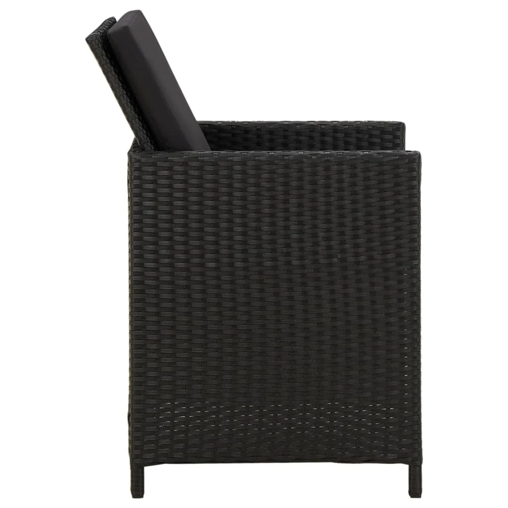 vidaXL dārza krēsli, 4 gab., ar matračiem, PE rotangpalma, melni