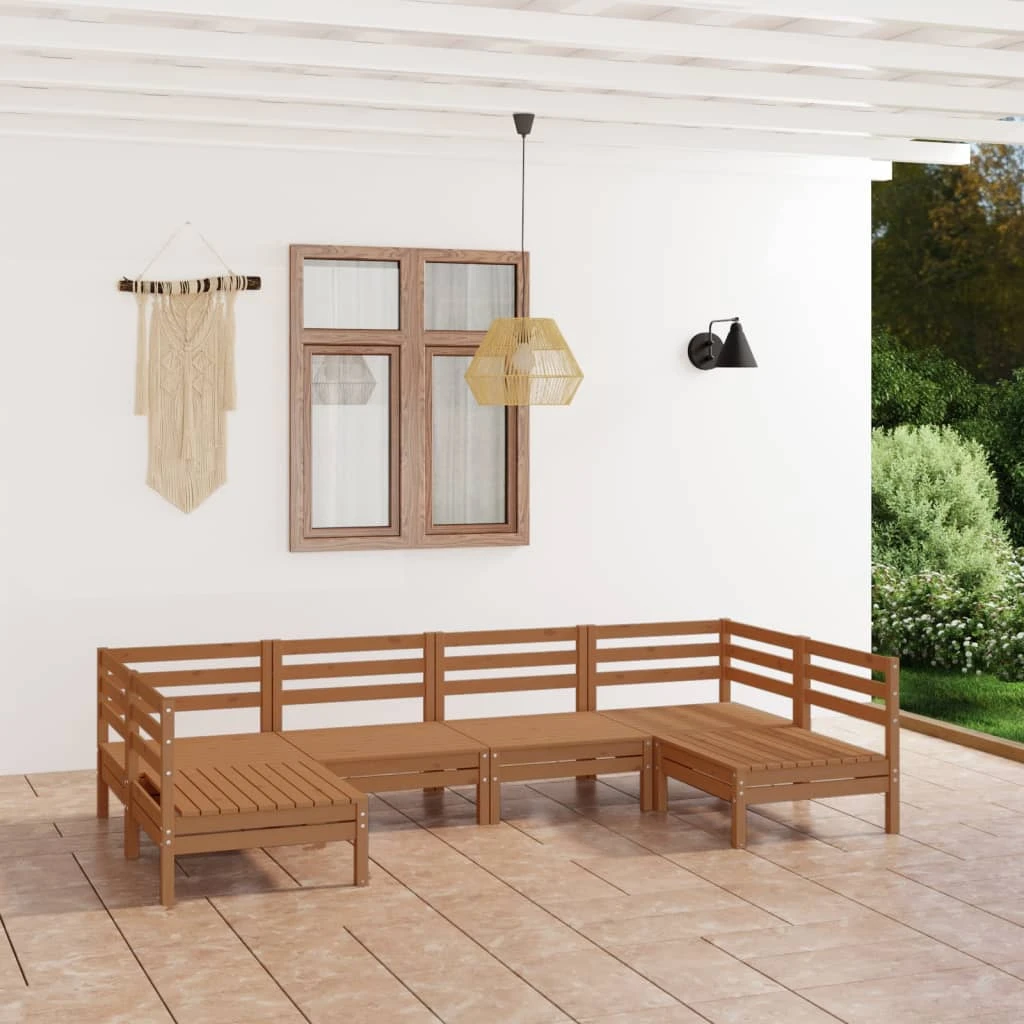 vidaXL 6-daļīgs dārza atpūtas mēbeļu komplekts, brūns priedes koks