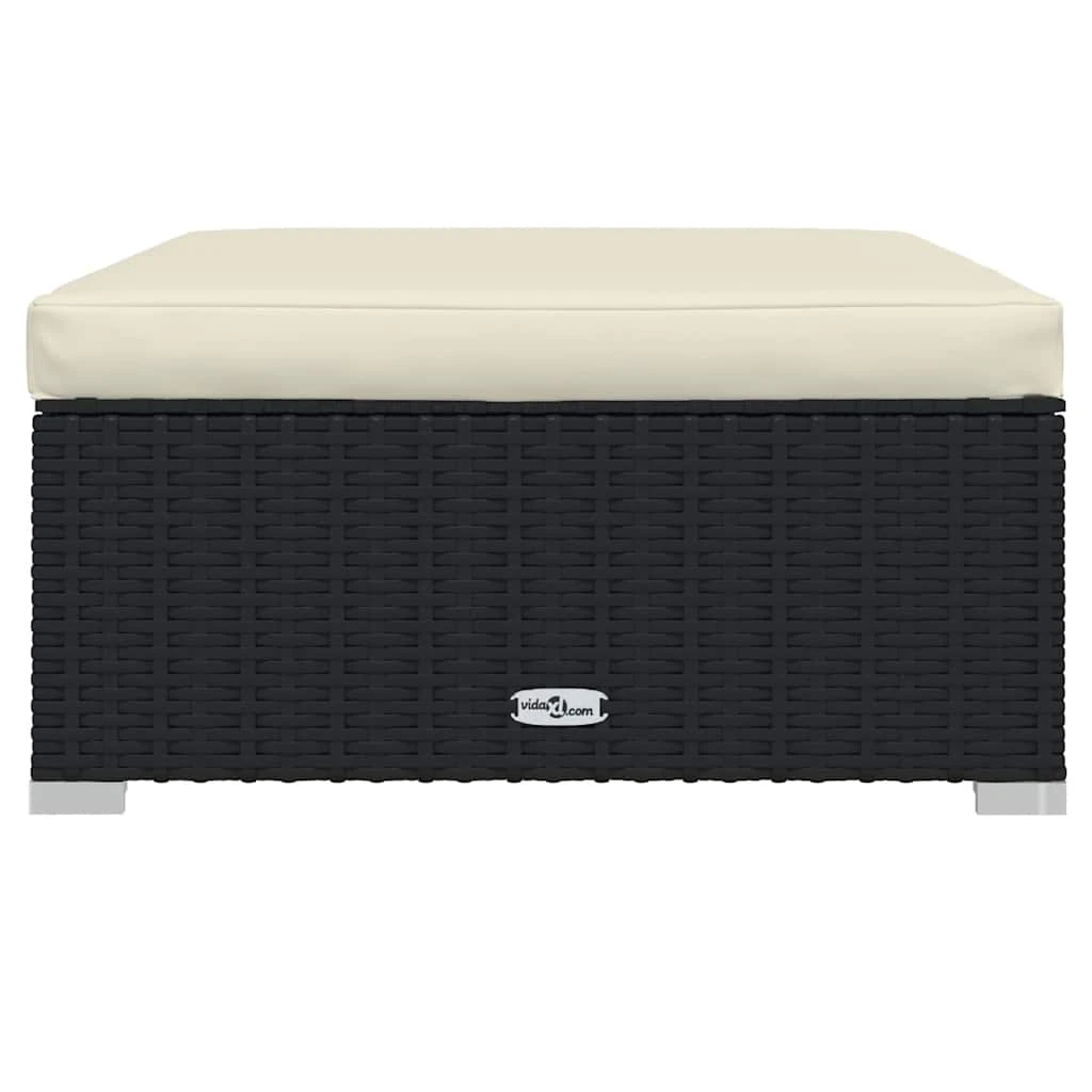 vidaXL dārza kāju balsts ar matraci, 70x70x30 cm, melna PE rotangpalma