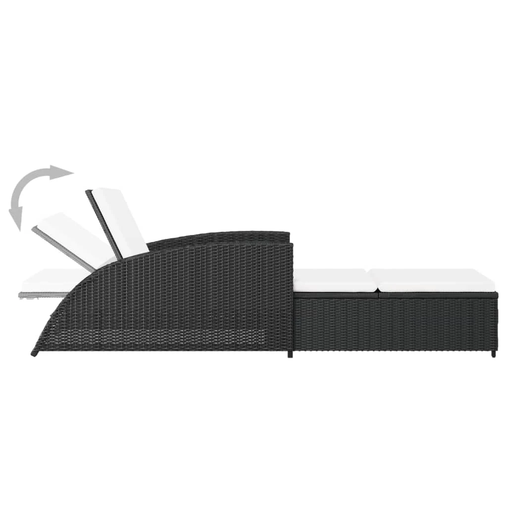 vidaXL sauļošanās zvilnis, bēšs matracis, melna PE rotangpalma