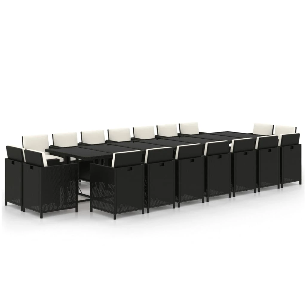 vidaXL 19-daļīgs dārza mēbeļu komplekts, matrači, melna PE rotangpalma